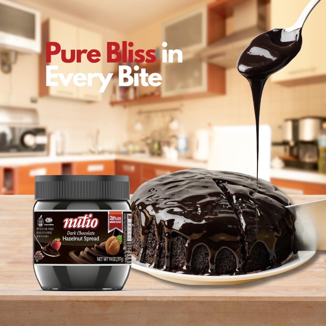 Cocoa rich recipe for chocolate lovers: Indulge in the rich and velvety Nutio Dark Chocolate Hazelnut Spread, a treat designed for chocolate lovers. This cocoa-rich spread expertly blends dark chocolate with roasted hazelnuts, creating a harmonious fusion of flavors. What makes it special is its reduced sugar content, offering a delicious indulgence with 26% less sugar than traditional alternatives.